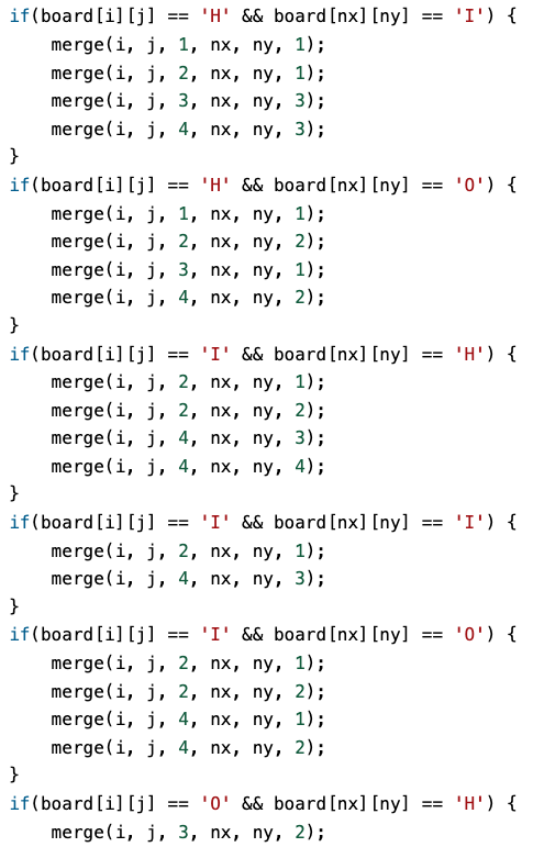 그사이 팀원은 각각 F, H를 보고 풀이가 나왔다. H 풀게 자리를 비켜줬고, 그동안 F는 풀이는 확실하지만 구현방법이 정리가 안돼서 구현을 어떻게 할지에 대해 대화했다
